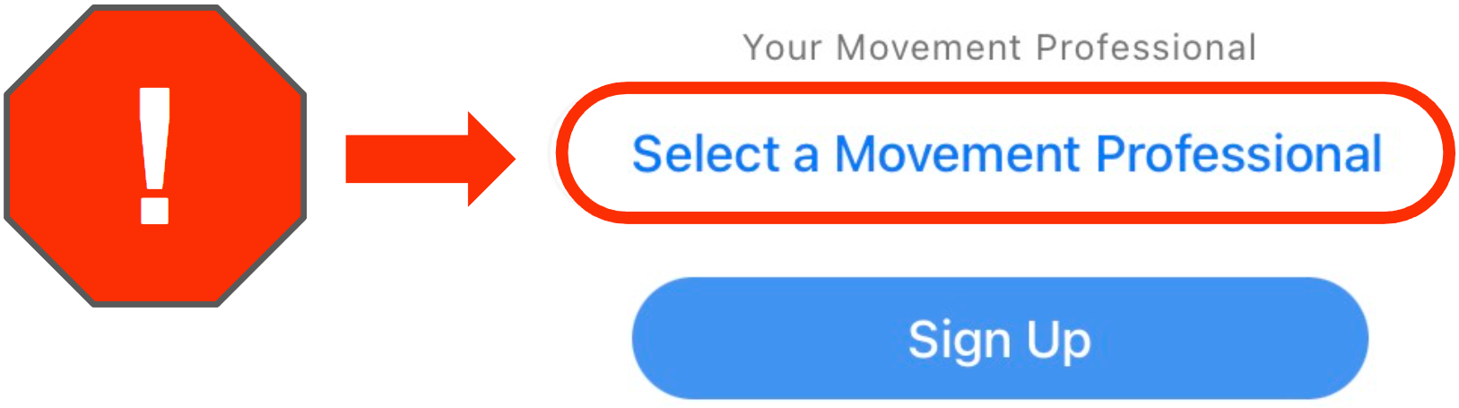 During the sign-up process, Clients must select "Sign Up" as a Client and then find their specific Movement Professional in the app directory/list to link the accounts.